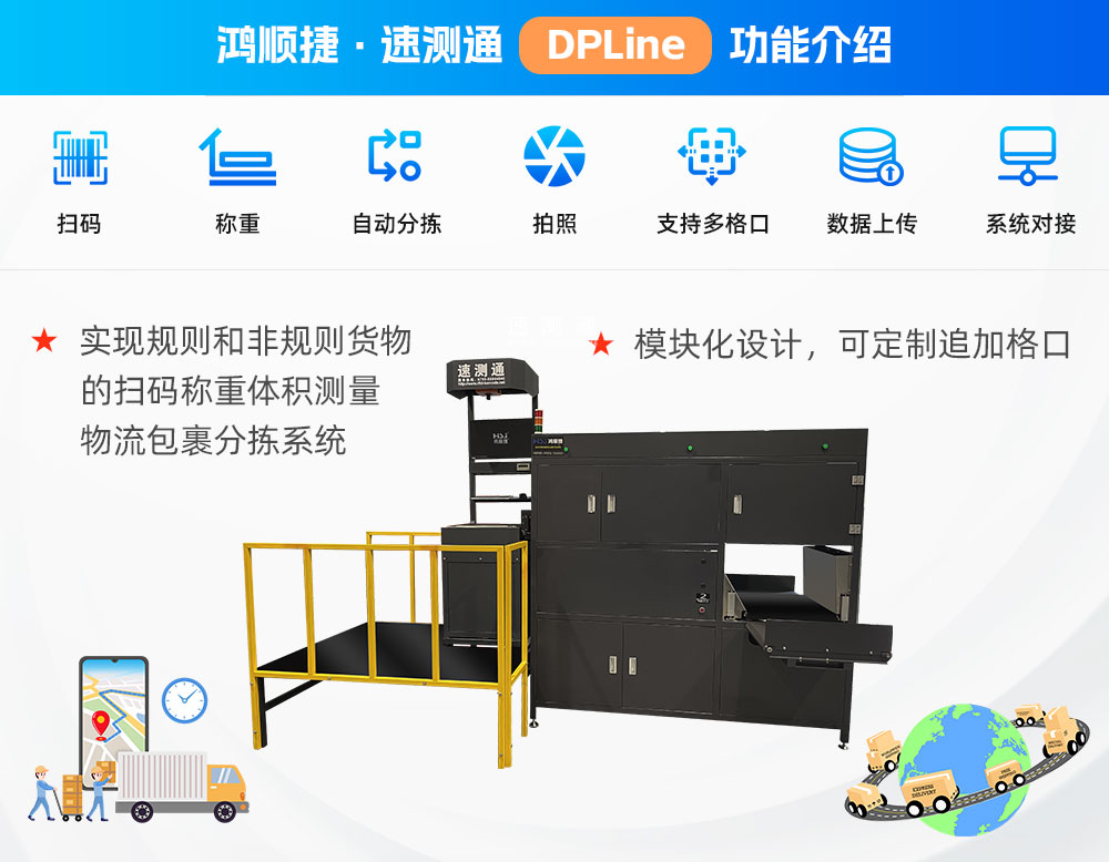 鴻順捷·速測(cè)通DPLine自動(dòng)掃碼稱重分揀設(shè)備,采用??禉C(jī)掃碼相機(jī)、工業(yè)壓力傳感,穩(wěn)定可靠數(shù)據(jù)精準(zhǔn),可以實(shí)現(xiàn)規(guī)則和非規(guī)則貨物的條碼掃描、稱重、分揀系統(tǒng)判斷及數(shù)據(jù)上傳等功能,模塊化設(shè)計(jì),占位小,功能強(qiáng)大,為物流及電商企業(yè)分揀的最佳助手!